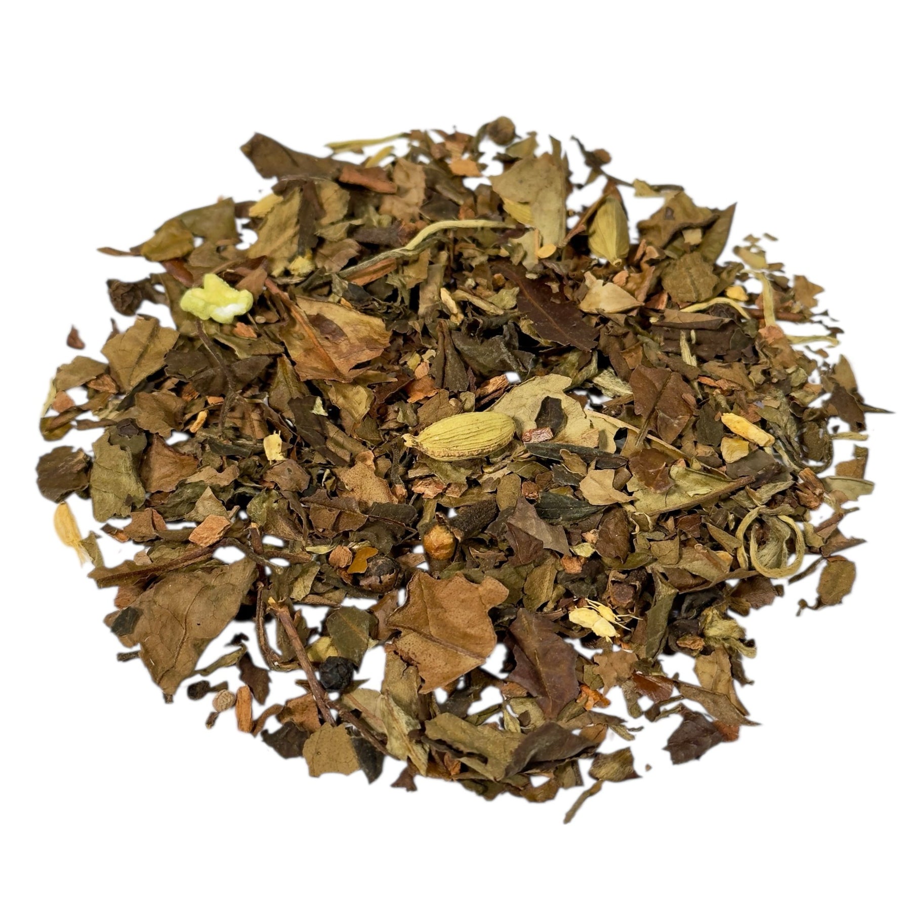 Die Basis dieser Mischung bildet ein sanfter Weißtee, der dem klassischen Chai-Gewürzensemble eine besonders feine Note verleiht. Zimt, Kardamom, Ingwer und ein Hauch von Pfeffer bringen genau die richtige Portion Wärme und Exotik ins Spiel. Abgerundet wird das Ganze durch eine sanfte Süße, die das Aroma perfekt ausbalanciert. Das Ergebnis? Ein Chai, der nicht nur würzig, sondern auch herrlich cremig schmeckt und definitiv Lust auf mehr macht.