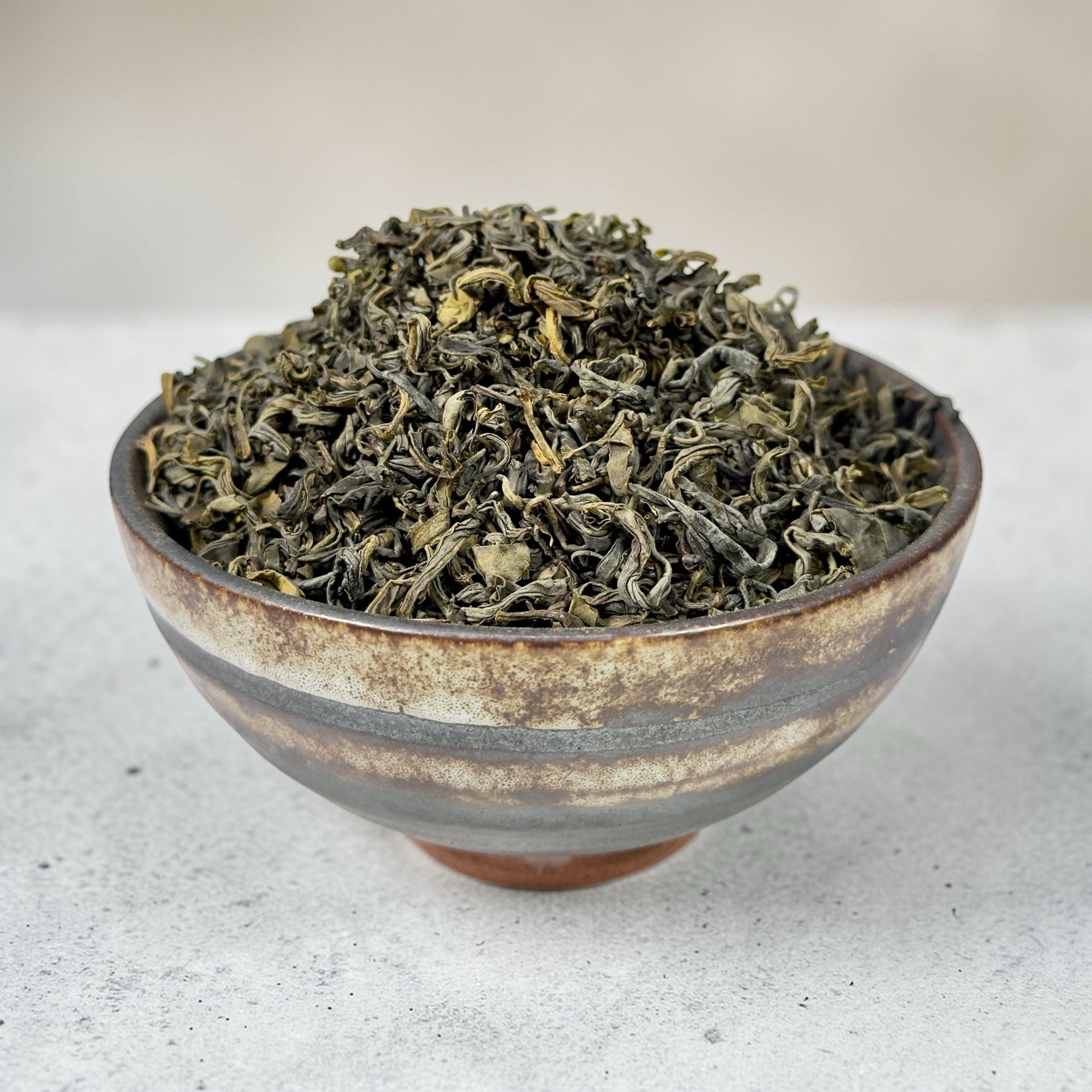 Die Drehung der Blätter erinnert an klassische chinesische Grüntees, bleibt jedoch eigenständig. Statt filigraner Gleichmäßigkeit zeigt sich hier ein kraftvoller, authentischer Stil, der gut zur Landschaft passt, aus der der Tee stammt.