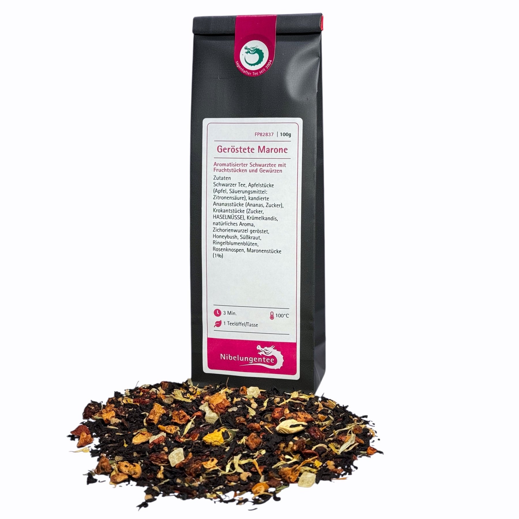 Maronen verleihen der Teesorte eine wunderbar nussige und leicht süßliche Note, die an gemütliche Herbsttage erinnert. Ihr mildes, erdiges Aroma sorgt für eine angenehme Tiefe und passt perfekt zu würzigen oder cremigen Teemischungen. Sie bringen eine warme, fast schon karamellige Nuance in die Tasse, die den Tee besonders harmonisch macht. Ob als kleine Überraschung im Tee oder als Hauptakteur – Maronen sorgen für eine köstliche, herbstliche Gemütlichkeit. Ideal für alle, die ihren Tee gerne mit einer besonderen, sanften Geschmacksnote genießen!
