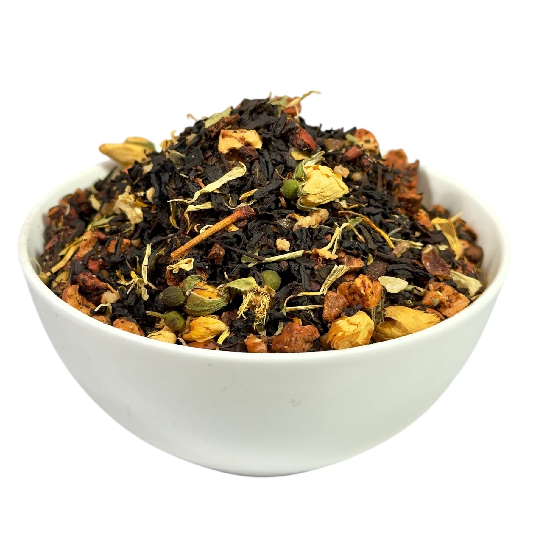 | Art: | Aromatisierter Schwarztee mit Fruchtstücken und Gewürzen |