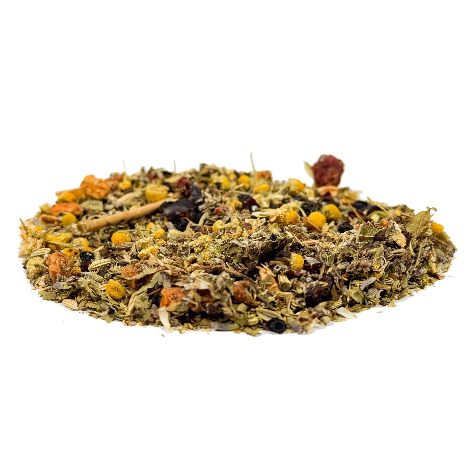 Der Fenchel verleiht der Teesorte durch seinen mild-süßlichen und leicht würzigen Geschmack eine besondere Note, die an Anis erinnert und gleichzeitig sanft und erfrischend wirkt. Sein aromatisches Profil harmoniert hervorragend mit anderen Kräutern und Gewürzen, wodurch komplexe und ausgewogene Geschmackskompositionen entstehen.