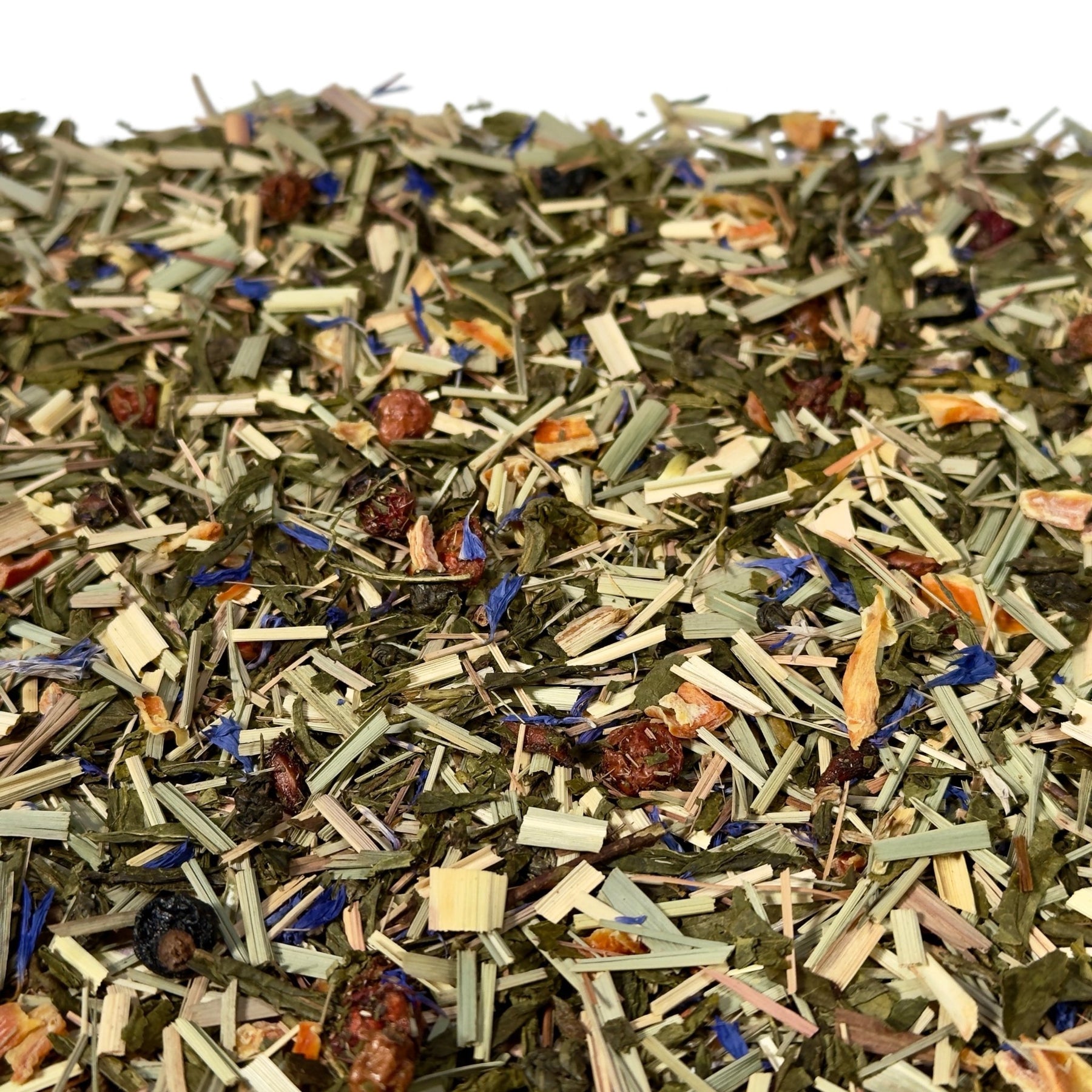 Schon beim Öffnen der Packung umspielt ein einladendes, fruchtiges Bouquet die Sinne. Im fertigen Aufguss zeigt sich dieser Tee lebendig und klar, ohne zu überladen zu wirken. Die fruchtigen Noten stehen im Vordergrund, während die grüne Basis dem Gesamtbild Tiefe und Kontur verleiht. Egal ob an einem ruhigen Vormittag oder als angenehmer Abschluss eines arbeitsreichen Tages – diese Mischung sorgt für einen Moment der Freude ganz für dich allein.