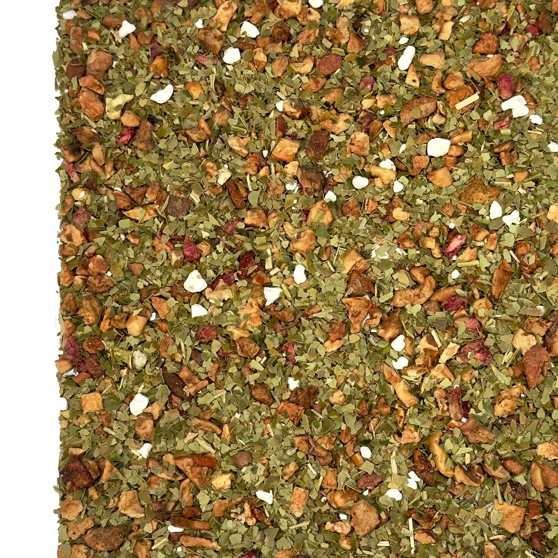 Als besonderes Highlight sticht der Granatapfel hervor. Mit seiner süß-säuerlichen, leicht exotischen Note bringt er nicht nur Geschmackstiefe, sondern auch diesen Hauch von „Superfruit-Feeling“. Er verleiht dem Aufguss einen modernen, lebendigen Charakter, der perfekt zum Mate-Tee passt.