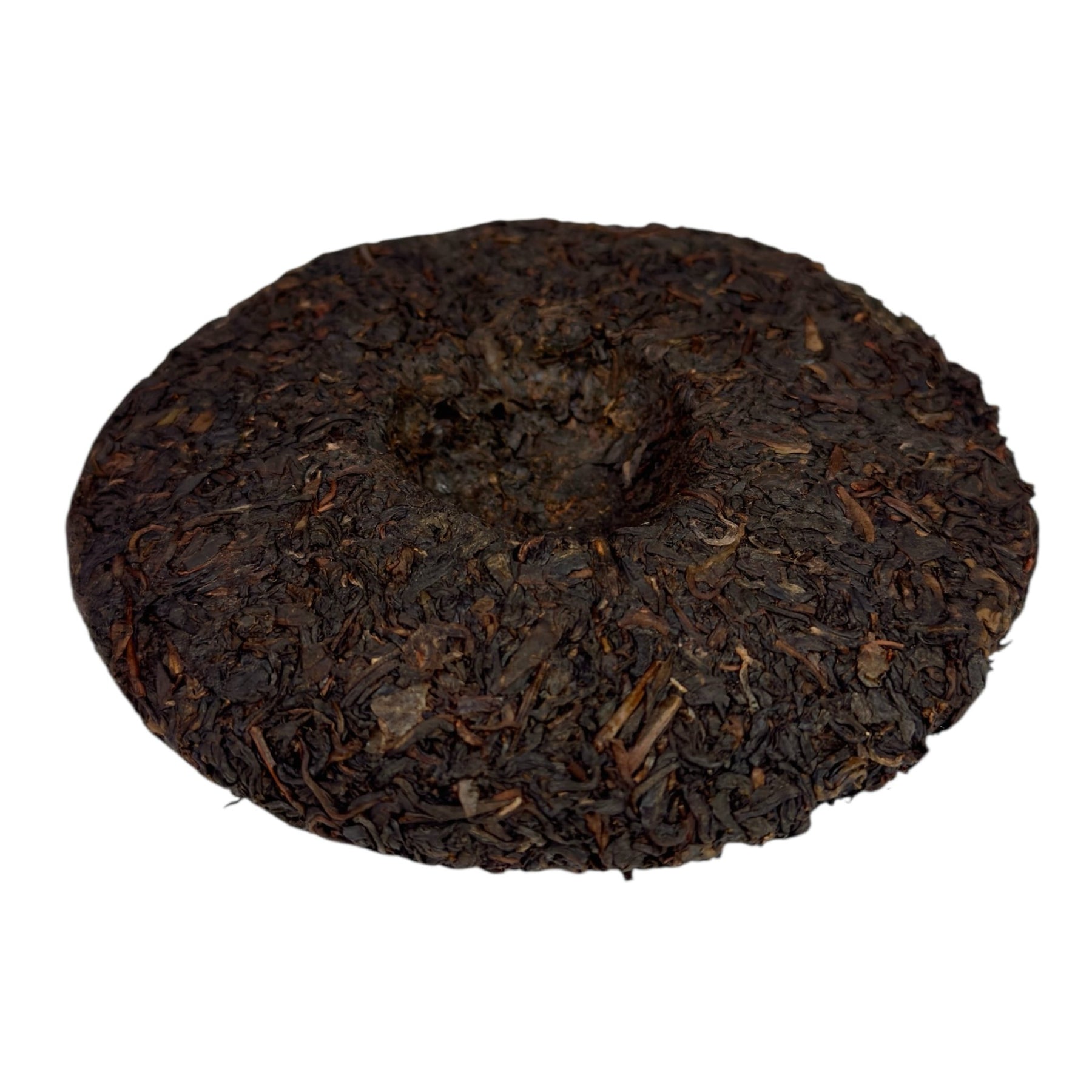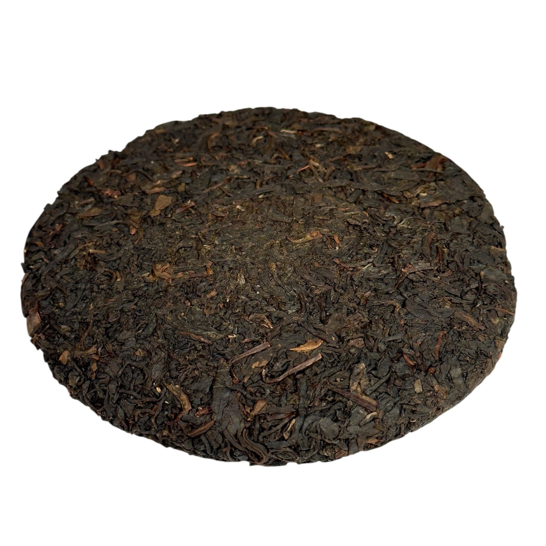 Das gepresste Blatt zeigt sich schwarz-bräunlich, dicht und gleichmäßig gearbeitet. Die flache, runde Form wirkt ruhig und klar – ein Spiegel der präzisen Verarbeitung. Jeder Teekuchen erzählt von der Erfahrung und dem Mut, neue Wege zu gehen, ohne den Respekt vor dem Blatt zu verlieren.